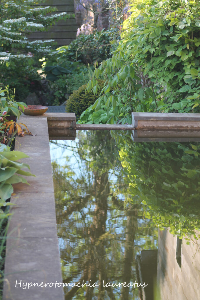 Premièrement, vous pouvez utiliser l’eau pour refléter le ciel cela, aura pour effet, d’agrandir artificiellement votre jardin en renvoyant la lumière par effet miroir (Photo 1). Bien sur, plus la surface de l’eau est occupée par des plantations et moins cela renvoie de luminosité ! A vous de choisir ! Dans le même objectif, plus la surface de l’eau est calme, sans ondulations apportées par une chute d’eau ou un jet et plus l’effet miroir fonctionne.
